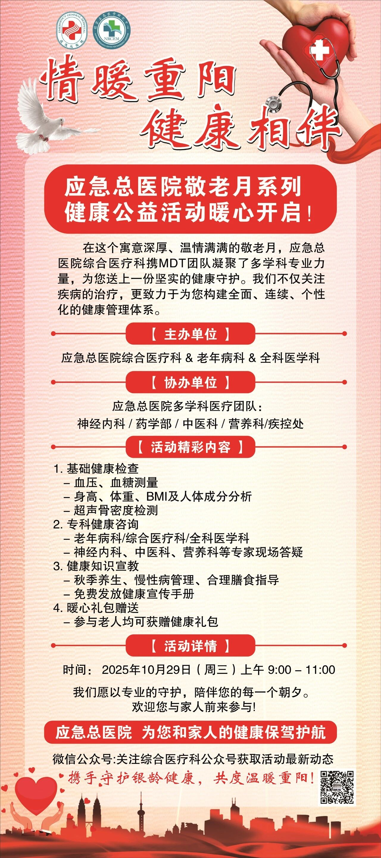 情暖重阳节!应急总医院10月29日上午义诊来啦!