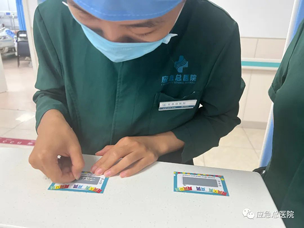 为体现考核公平公正,专门制作了刮刮卡,每一名护士通过刮刮卡的形式现场抽取考核内容,护士长在考试前精心安排高年资护士一对一精准教学指导低年资护士,在考核练兵前形成了浓厚的学习氛围。考核当日,每一名护士全神贯注,按照操作标准逐步展示各项技能。