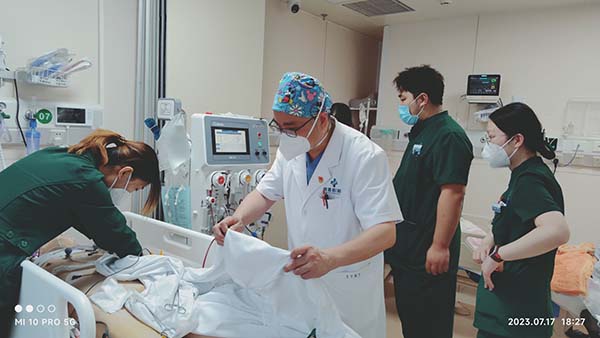 时间就是生命。急诊科主任缪国斌率医护团队立即展开抢救,实行洗胃术联合血液净化灌流治疗,因为血液灌流清除高脂溶性药物效果良好,还可清除中大分子炎症因子,这是对急性药物中毒非常有效的救治方式。