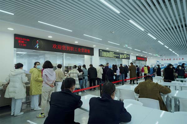 经过两个多月紧锣密鼓装修改造,3月6日,应急总医院全院职工期盼已久的新食堂正式启用。就餐条件和环境焕然一新,饭菜种类和质量全面提升,这是院党委关心关爱全院职工的一项务实举措。