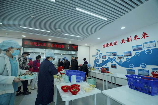 新食堂总面积超过900平方米,可以满足300余人同时就餐。菜品丰富多样,环境宽敞明亮,职工们吃着热气腾腾的可口饭菜,喜悦的心情溢于言表。“感谢医院为我们办了一件好事、实事,感到特别温暖!”“新食堂环境太好了,也更有食欲了,吃饭也更香了!”