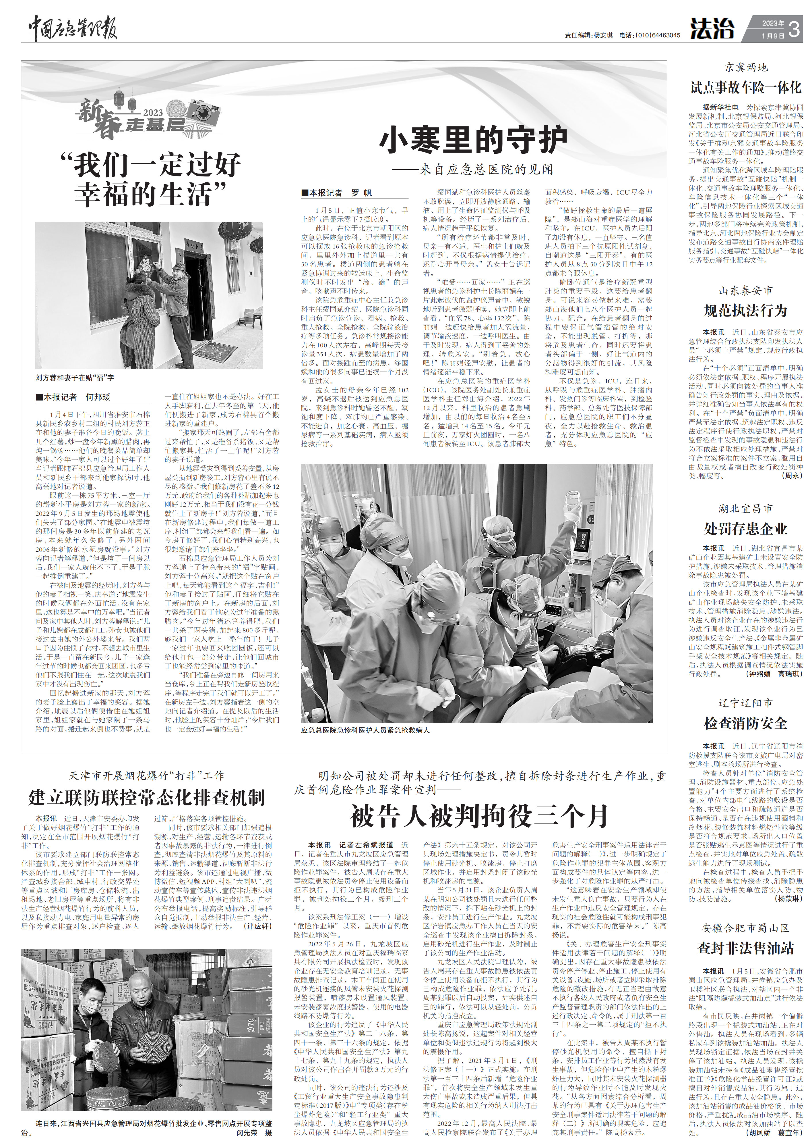 1月9日的《中国应急管理报》第三版“新春走基层”栏目刊发了记者在我院急诊科、ICU的见闻,全文如下。