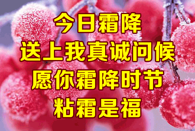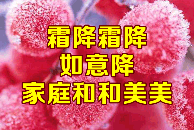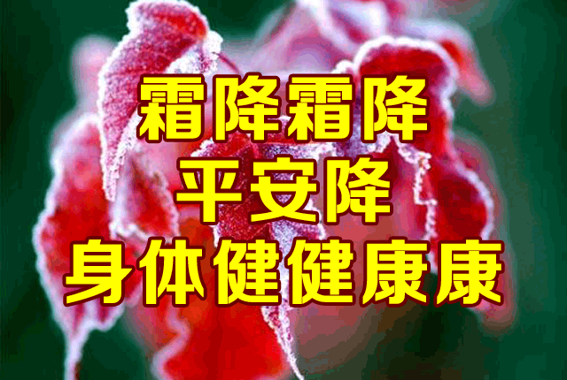 霜降是秋季的最后一个节气,是秋季到冬季过渡的开始,最低气温可达到0度左右。俗语有“寒露不算冷,霜降变了天”。这个节气,昼夜温差变化会增大,人们要注意添加衣服,特别要注意脚部和胃部保暖。