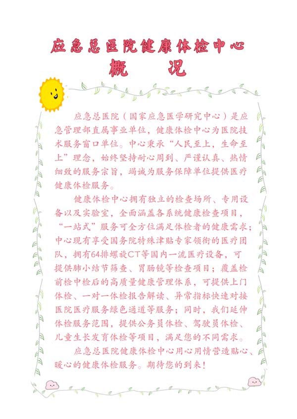 应急总医院体检中心用真心、细心、贴心的服务,为您的身体健康保驾护航。