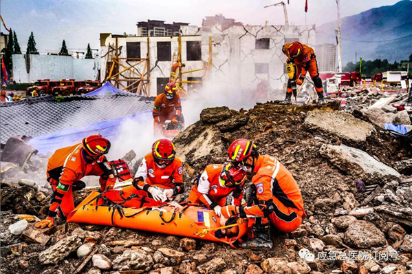 5月14日上午,“应急使命 2021”演习正式开始,中国救援队医疗队以高水平展示了现场营救伤员、转运急救等环节,动作准确熟练、衔接紧密,圆满完成了任务。