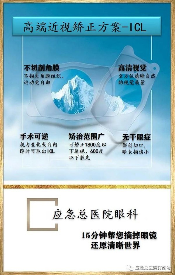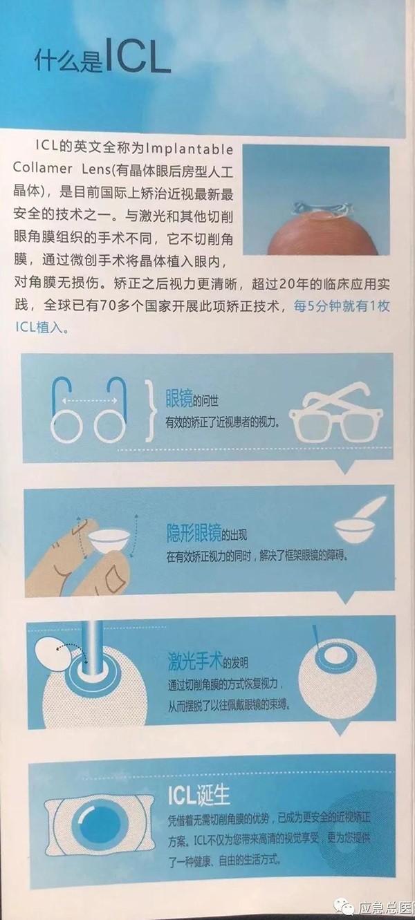 近视眼的朋友们要敲黑板、划重点了:应急总医院眼科开始开展ICL(Implantable Collamer Lens, 可植入性人工晶体)有晶体眼后房型人工晶体植入术。