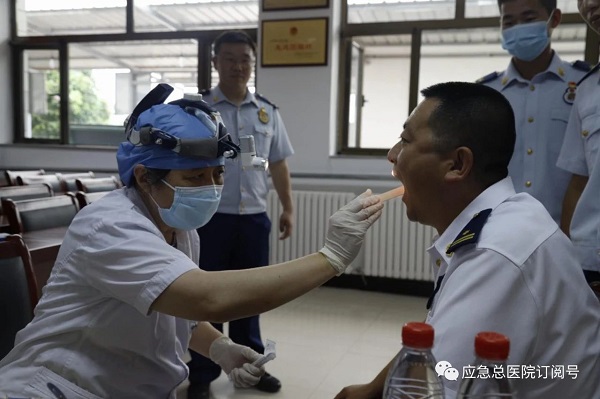 在两天的体检和巡诊中,我院专家团队成员冒酷暑,不辞劳苦,热情地为指战员提供医疗服务,耳鼻喉科原主任吴慧丽,在一上午的耳鼻喉查体结束后,中午不休息,又投入到听力筛查中,汗水顺着她的面颊流淌。对指战员咨询的医疗问题,专家们做了耐心、细致的解答;对通过查体中发现的异常情况,专家们在现场进行了多科室会诊,商定下一步的治疗方案。