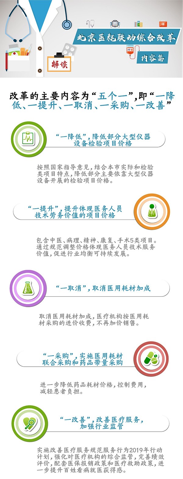 2018年12月,北京市委市政府按照党中央、国务院关于深化医改的有关要求,结合北京实际,制定发布了医耗联动综合改革政策。按照市委市政府的部署,北京医耗联动综合改革将于6月15日零时正式实施。