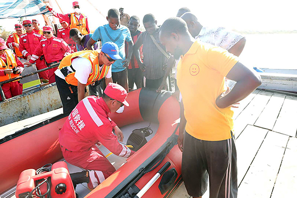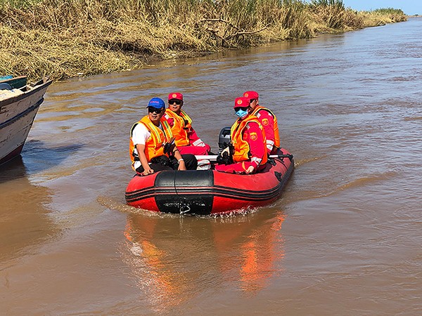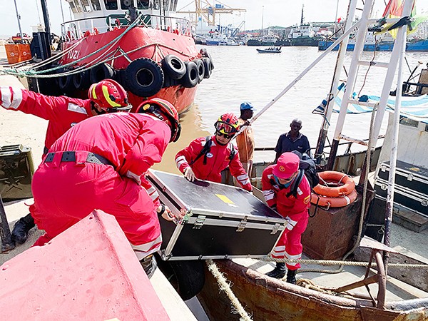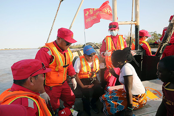 据应急管理部网站消息,3月28日,中国救援队跨海实施救援行动。抵达重灾区buzi(部滋)码头后,利用舟艇对断路村庄进行侦察,并向当地捐赠了橡皮艇和食品物资。同时,受当地政府委托,将六名伤员运送回贝拉市。图片资料由中国救援队提供