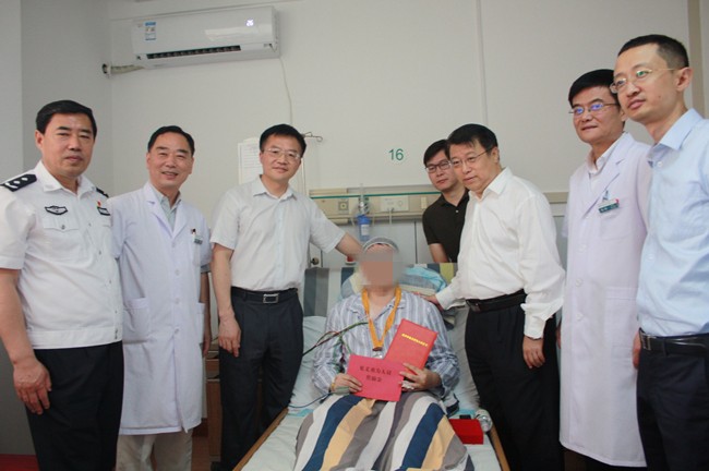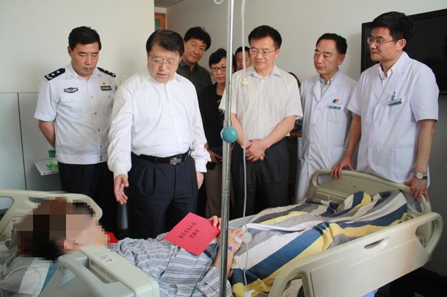 6月18日上午,北京朝阳区委、区政府和北京市公安局、朝阳分局相关领导、工作人员前往我院,探望慰问了6月15日在朝阳区西坝河南路附近因见义勇为而英勇负伤的群众。院长张柳、党委书记曾庆玉、副院长张斌陪同看望慰问。