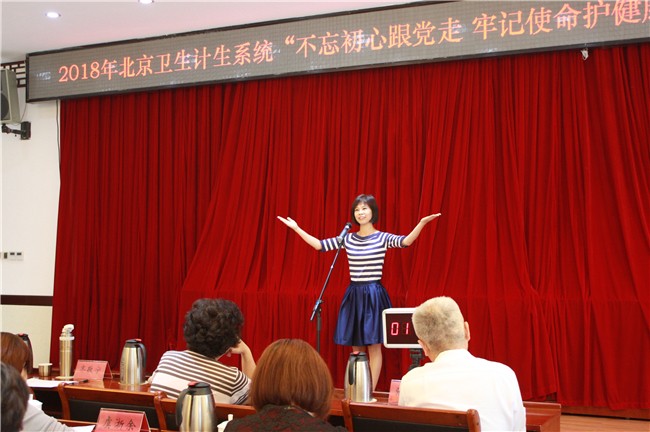 6月11日至6月12日,2018年北京卫生计生系统“不忘初心跟党走 牢记使命护健康”主题宣讲活动预赛在市卫生局党校举行。来自红十字血液中心、北京安贞医院、北京天坛医院等单位的113名宣讲员参赛,我院选派了肿瘤内科护士长孔令煜和麻醉科手术室护士陈丽娟,参加了6月12日上午的预赛。
