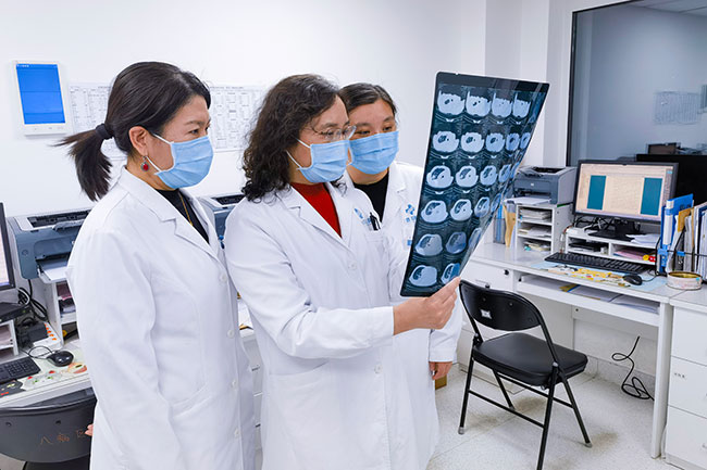 63岁的龚先生于2023年5月诊断为食管癌,对于刚刚退休安享晚年的他及其家人来说简直是晴天霹雳,为了尽快摆脱病魔的困扰,龚先生踏上了漫漫的求医路。 经过化疗联合免疫治疗后,患者的病情并未得到有效控制。于是开始放疗,按照方案,需要放疗25次。但患者在放疗第9次时突发大咯血,量约300ml左右。在北京某医院住院治疗期间使用了各种止血药物,甚至持续应用号称内科止血钳的“垂体后叶素”仍不能有效止血。于是患者接受了支气管动脉栓塞治疗,支气管动脉栓塞被认为是治疗咯血最有效的血管介入治疗方法,即刻止血率高达73-98%,可是患者在做完支气管动脉栓塞后再次咯血约500ml,已无法正常说话、进食和活动,生命危在旦夕。 “北京这么多大医院,这么多专家,我的病真的没救了吗?”患者及其家人陷入了绝境。如果咯血不能得到有效控制,将会出现失血性休克甚至窒息等风险,后果不堪设想。走投无路之际,经人介绍得知应急总医院周云芝医疗团队的支气管镜诊断与治疗技术全国领先,为数以万计疑难病例明确了诊断并成功进行治疗,其临床技术水平得到医学界和患者高度称赞。 查看患者片子 患者家属带着最后一线希望慕名来到应急总医院,找到了呼吸与危重症医学科周云芝主任,希望能尽快实施气管镜查明出血原因并进行镜下治疗有效制止咯血,可是支气管镜操作风险极高,难度极大,各大医院都是望而却步。 患者家属在门诊找到了周云芝,周云芝详细了解病情后对家属说:“立即将患者送往应急总医院,我们全力以赴救治!” 救护车一到达应急总医院,周云芝立即前往重症监护室对患者进行了全面查体,并仔细查看了胸部CT,发现右肺中叶存在一空洞性病变,考虑此病变为咯血的罪魁祸首。因为患者对咯血的药物治疗及支气管动脉栓塞治疗效果不理想,决定为他进行支气管镜下止血治疗。 术前,周云芝与麻醉科主任程庆好充分沟通病情,并做好了术中大出血的处理预案,如术前准备充足气管镜下止血药物、提前备好球囊以压迫止血、术前备血等。术中可以看到气管管腔内较多血性分泌物,充分吸引清除后可见右中叶内侧段存在活动性出血,给予血凝酶镜下喷洒后血止,但患者术后再次咯血约100ml,这意味着支气管镜下止血效果欠佳。周云芝团队面临着前所未有的挑战。 “病人间断咯血,各种治疗手段效果差,但只要有1%的希望,咱们就要尽100%努力。”大家在棘手难题面前毫不退缩,周云芝的动员点燃了团队的信心。 实施气管镜手术 经过团队的头脑风暴,大家制定了两种方案:一是再次进行支气管动脉造影,尝试找到供应右肺中叶病变的血管后行栓塞治疗。但患者已在外院进行支气管动脉栓塞治疗,所以难度更大,技术要求更高,如果仍然找不到靶血管就会增加患者的风险。二是外科肺叶切除,但患者食管癌病史,营养情况很差,手术难度高,术中风险大,对患者的创伤大。 风险往往和获益并存,在与患者家属充分沟通病情后,决定为患者重启支气管动脉栓塞治疗。栓塞按计划进行,家属在手术室外焦急等待。周云芝率罗凌飞主任医师、张鹏主治医师等团队成员,凭借精湛的医术和丰富的经验终于找到了罪魁祸首的出血动脉并成功进行栓塞,栓塞后患者停用了所有止血药物未再出现咯血。复查气管镜右肺中叶内侧段没有任何血性分泌物,意味着出血已完全停止。周云芝率医护团队来到病房查房时,患者激动的心情溢于言表,竖起大拇指,为周云芝团队的高超技艺点赞。 原本命在旦夕的龚先生,在周云芝团队的救治下创造了生命奇迹。周云芝团队就像一盏灯塔,给患者带来希望的曙光,使患者重拾生活的信心。 周云芝率团队查房 据了解,呼吸介入诊疗技术属于高难度技术,对手术经验、操作技术、救治体系、术后护理等都是极大的考验。自2004年,应急总医院呼吸与危重症医学科就开展了支气管镜介入诊疗技术,如今周云芝率团队每年实施支气管镜下各类介入治疗手术3000余例,操作技术娴熟、手术经验丰富,为数万名呼吸困难的患者带来了福音,改善了生活质量,应急总医院呼吸介入技术全面,不仅开展支气管镜技术,还开展了血管介入及经皮穿刺介入诊治技术,其技术水平走在北京市乃至全国前列。 感激之情 感激之情 感激之情 科室简介 应急总医院呼吸与危重症医学科是医院的重点科室,集医疗、教学、科研三位一体的现代化科室,经过多年的不懈努力和创新发展,科室已成为拥有呼吸门诊(普通、专家)、呼吸病房、支气管镜室、内科胸腔镜室、肺功能室、重症监护室、CT室、导管室、中心实验室等多功能于一体的独立临床科室。 科室团队 科室常年开设有肺癌专病门诊、肺癌微创治疗专病门诊、肺小结节门诊、气道狭窄、气道瘘专病门诊、慢性阻塞性肺病(COPD)专病门诊、支气管哮喘门诊、变态反应门诊、间质性肺病专病门诊等专科门诊。科室配备了各类先进的仪器设备,常规开展各种呼吸系统疾病的诊治,其中介入诊疗技术处于全国领先水平。2014年率先在北京市开通了呼吸道梗阻“绿色通道”,实行24小时接诊、住院半小时内得到有效治疗,挽回了无数急危重气道狭窄患者的生命。2017年获批中国内镜医师协会硬质镜培训基地,培训全国各地进修医师近千人。 传道授业 传道授业 科室特色技术: 1、经气道技术:开展无痛支气管镜诊治,包括:硬质镜、氩气刀、