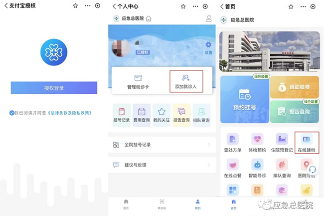为了实现我院智慧服务多平台覆盖 推进智慧医院建设进程 进一步落实 “改善医疗服务,提高群众获得感” 服务目标 为患者创造更好的就医体验 我院官方微信、支付宝小程序 正式上线啦 打开微信或支付宝搜索 “应急总医院”小程序 即可实时在线进行 预约挂号、缴费、查报告等就医服务 大大节省排队时间 让就医更方便快捷 快来看看如何操作吧 小程序操作指南 一、如何进入小程序 打开支付宝或微信扫一扫,扫描下方二维码即可进入小程序。 (微信小程序码);(支付宝小程序码) 打开微信搜索【应急管理部应急总医院】或支付宝首页搜索【应急总医院】即可进入小程序。 二.如何在线建档 选择【我的】进行授权登录,点击【添加就诊人】按钮,即可建档或【首页】点击【在线建档】也可以建档。 进入界面后填写相关用户信息 三、如何在线挂号、缴费、查报告 预约挂号:点击【预约挂号】选择就诊院区,进入挂号页面,选择挂号科室、医生、日期,选择就诊人,点击确定完成挂号。挂号完成后,用户可在【我的】——【挂号记录】中查看。 自助缴费:点击【自助缴费】跳转到自助缴费页面,正常缴费即可。注:自助缴费只支持自费,不能进行医保结算。 报告查询:点击【报告查询】跳转到报告查询页面,选择检查或检验结果,选择日期。注:报告查询只支持近一年的数据查询。 小程序里还能呈现查处方单、体检预约、住院预登记、在线点餐、智能导诊、排队查询、医院导航、健康百科、就医指南、综合查询、门诊满意度调查等丰富功能。此外,在小程序的最下方,还设有健康科普、医院新闻和医院简介三个板块。为用户提供全方位的服务。 怎么样,操作是不是很简单呢?赶快进入我院小程序体验线上就诊吧!日后我院将持续探索创新智慧医疗服务,继续完善“应急总医院”小程序的更多功能,升级信息化技术与医疗服务的深度融合,提供高质量服务,让群众就医更便利、快捷、安全。 此外 11月29日 我院将对微信公众号进行升级 升级时间预计2小时 (16:00-18:00) 升级期间患者无法使用微信公众号 进行挂号、查询等服务 在此期间 请您使用应急总医院支付宝小程序 办理相关业务 给您带来不便 敬请谅解 来源:门诊部、信息管理中心 主办:融媒体中心 监制:彭雪征 责编:莫 鹏